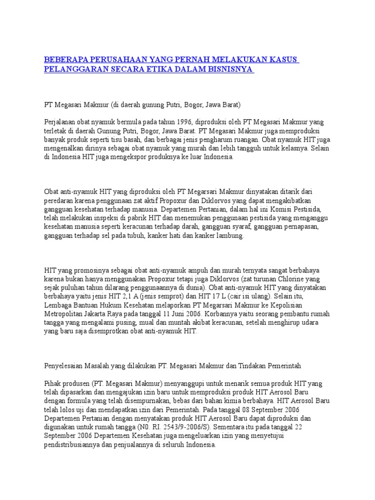 (DOC) CONTOH KASUS PELANGGARAN ETIKA BISNIS Dessy Fitri